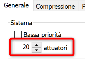 Il parametro "multi-processo", presente nella pagina "Generale" della configurazione di WinRAR è stato sostituito dal campo "attuatori" dopo è possibile specificare la quantità desiderata