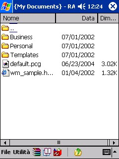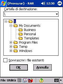 Fuori da un archivio, in modalità "Gestione file", si può navigare all'interno del Pocket PC e selezionare altri archivi da gestire, oppure file da comprimere ed archiviare.
